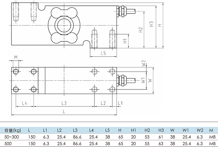 最大秤量: 50kg,100kg,200kg,300kg,500kg,1t應 用(yong):適用(yong)于臺案秤,包裝秤,檢重秤。