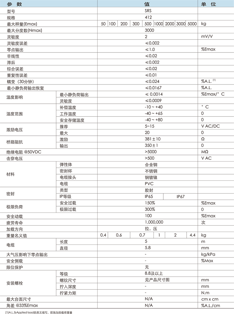 SRS412是(shi)膠封(feng)合金(jin)鋼S型梁傳感(gan)器,通過關節(jie)軸(zhou)承可方便得設計各種(zhong)用途的計量斗,防護等級(ji)IP65,可適用于一般工業(ye)環境。